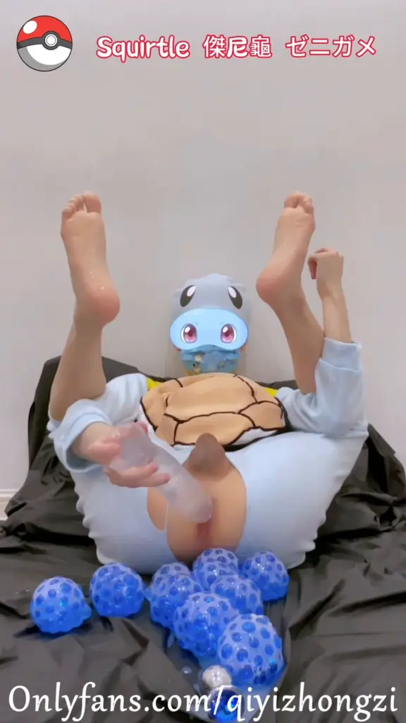 De video toont een kleine Oost-Aziatische vrouw in haar 20s, die een Charmander kostuum draagt en op haar rug ligt met haar benen omhoog en gespreid, terwijl ze een dildo vasthoudt. Ze verandert vervolgens in een Squirtle kostuum en herhaalt de actie. Dezelfde meisje verschijnt in een Pikachu kostuum, ook bezig met solo spel. De video laat haar veelzijdigheid in verschillende kostuums zien en haar affiniteit met dildo’s. Haar kleine postuur en tatoeages op haar gezicht dragen bij aan haar charme. De privéruimte binnenshuis zorgt voor een intieme achtergrond voor haar solo avonturen. Het natuurlijke licht en de zachte ballen (oranje, blauw en geel) complementeren haar speelse natuur.