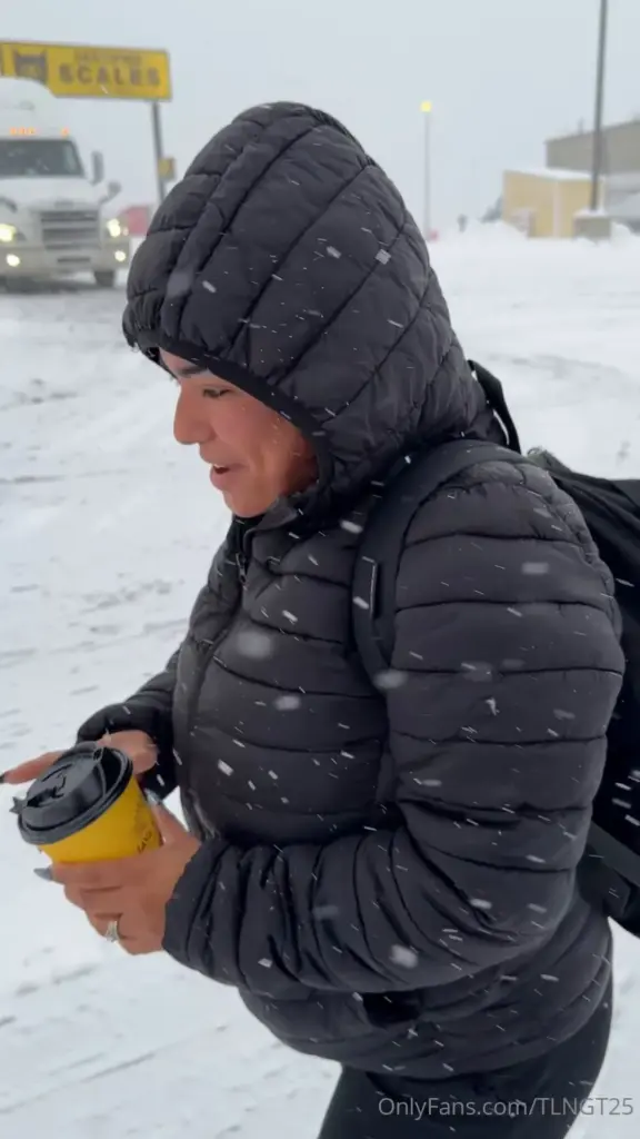 A thick brunette MILF in her 30s walks through an outdoor parking lot wearing a puffer jacket, jeans, and a backpack, holding a coffee cup the whole time. She’s got natural medium-brown hair cut short, large breasts that bounce slightly as she moves, and a relaxed, confident vibe. The whole video seems to be candid-style, like a casual morning routine shot in natural light with no script or posing. She smiles to herself, looks around, laughs a little, like she’s just living her day and not performing. Camera stays mostly at medium to close range, focusing on her body and movement without zooming in on faces too hard. You can tell this is the kind of content made for that ‘real life’ aesthetic — nothing staged, no strip, no sex, just a curvy, thick-waisted woman going about her morning. The jacket fits snug over her big tits, then opens slightly as she walks, giving occasional hints of her casual outfit underneath. No nudity, no touching, just natural presence. If you’re into unfiltered, amateur voyeuristic footage of middle-aged women with thick ass and big boobs just being themselves outdoors, this fits. The grainy realism adds to the vibe — looks like a phone recording, not a studio production. Background noise from the parking lot, faint traffic, no music. She never addresses the camera, never flirts, just sips her coffee and keeps moving. The loop makes it feel like she’s passing by, maybe on her way to class or work. No climax, no payoff — just sustained everyday energy.