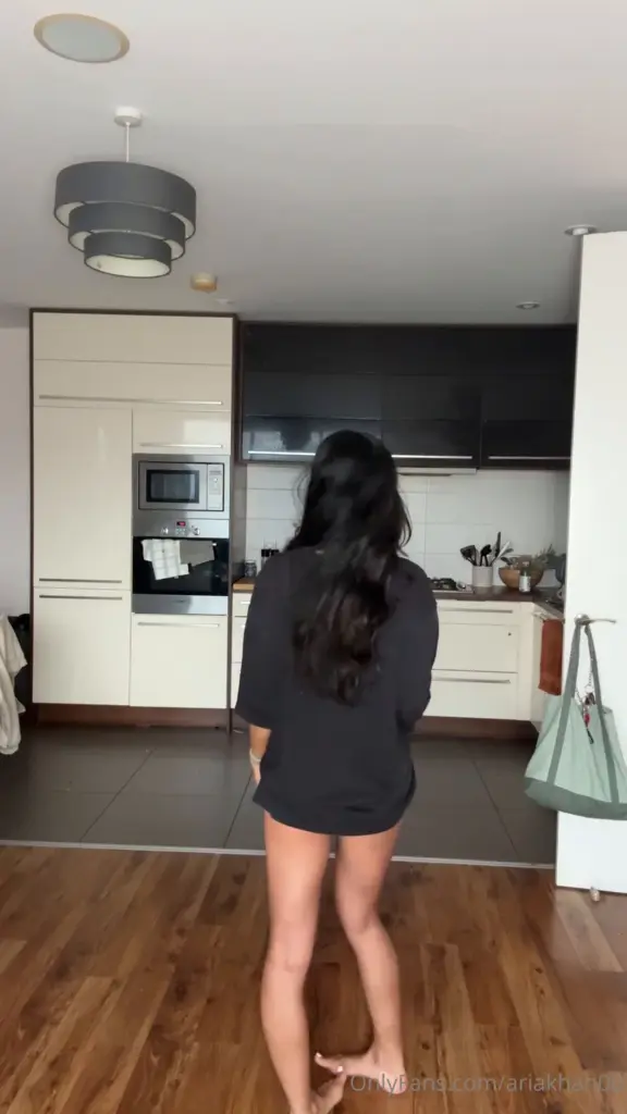 Aria Khan is alone in a kitchen, stretching with her arms up, wearing black, long dark hair down. She’s slim, late 20s, Asian, natural lighting shows every curve under morning-level sun. Starts off just touching herself—hands on head, then slowly works fingers under her waistband. She pulls her pants down, spreads her cheeks, starts fingering her ass on camera. No buildup, no music, just raw solo play with wide shots and tight close-ups when she pushes deeper. The camera stays wide for most of it, which makes it feel real, like caught-on-cam content. She doesn’t switch rooms, doesn’t put clothes back on—just keeps playing until she’s fully exposed and working two fingers in and out. What stands out is how casual it feels, no performance energy, just her doing her thing like nobody’s watching. Lighting stays consistent throughout, no edits or cuts that break the vibe. You see everything—the way she leans forward on the counter, how her back bends when she pushes in deeper, the slight wince when she stretches too far. It’s not loud or flashy, just straight-up ass play, well-shot and unedited.