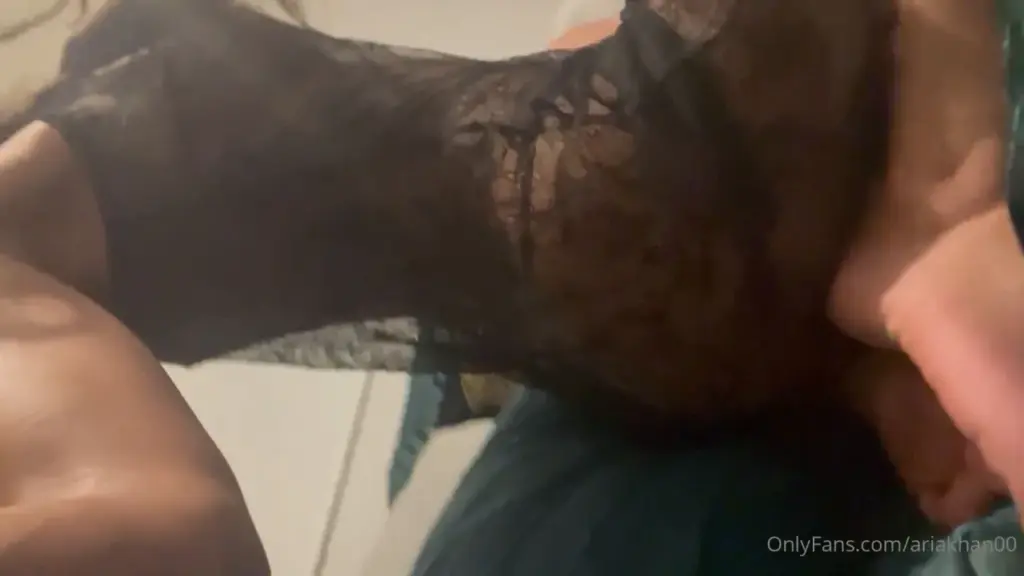 Aria Khan starts off in a sheer black lace top on a bed, slowly peeling it off to show her slim frame, dark brown long hair, and tattooed torso with a navel piercing. She’s alone at first, teasing with close-ups as she lifts and removes the top, her hands moving slow over her stomach. The vibe is intimate, static cam, natural lighting — looks like a real bedroom with soft pillows and muted colors. Then the guy shows up and she goes straight to work on his dick, deep throat action, mouth wide, lots of spit, head bobbing steadily. She takes over in cowgirl position, grinding hard, bouncing up and down with control, back straight, giving clear shots of her pussy sliding down. The camera stays tight, mostly close-ups, focusing on her tits, face, and the fuck. No fancy angles or cuts — it’s straightforward, raw, focused on her body and the rhythm. You see every bounce, every lean forward when she teases her clit while riding. After she flips to doggy, he grabs her hips, pulls her back into each thrust, skin slapping, her ass jiggling with each pump. She finishes with another round of riding, slower this time, eyes locked, then down on her knees sucking him off again until he cums. Full session feels personal, not staged — like you’re watching someone actually get fucked in their bedroom.