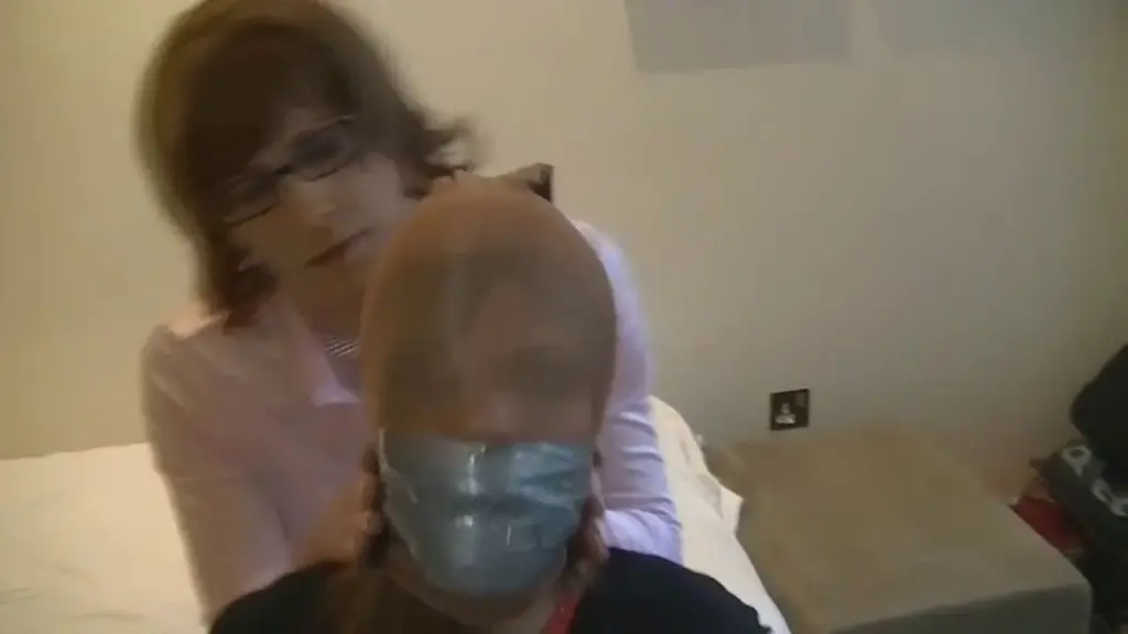 TranniesInTrouble nina jay bedtied pantyhose hooded by sandra lrg