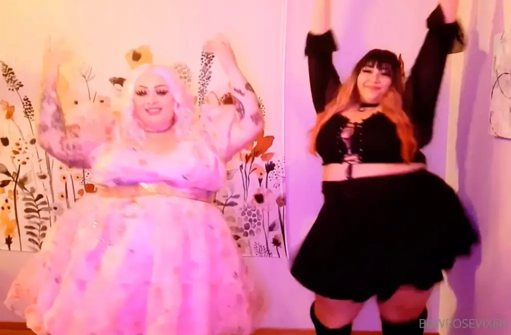 One of the girls has a full sleeve tattoo on her left arm — you see it clearly when she raises her arm while dancing. They’re both in their 20s, thick around the hips, wearing tight-fitting clothes that show off their shapes. The blonde wears a pink top and jeans, swaying slow at first, hips rolling, brushing up against the brunette who’s in a yellow tank and tight shorts. The camera stays wide at first, full room view, walls covered in floral patterns, natural light coming through a window behind them. After a minute of dancing, the blonde drops to her knees in front of the couch. The brunette sits down, spreads her legs, and the blonde goes straight for her pussy — no teasing, immediate licking, tongue moving in circles right on the clit. The angle shifts lower, closer, giving a clear shot of the face buried between the legs, lips sealed tight, cheeks caving slightly with suction. The brunette leans back, hand in the blonde’s hair, guiding the pace. Later, they switch. The brunette takes over oral, slower, more focused on the inner thighs at first, kissing and nibbling before working up. The blonde lies back across the same couch, legs wide, toes curling as the brunette laps upward in long strokes. You see their faces the whole time — relaxed, not performing for the camera, more like they’re alone. No talking, just moans in the background, the kind that are quiet but consistent. The floor is hardwood, a few scattered rugs, nothing too flashy in the room besides the women. Camera work is steady, not shaky — someone knew where to stand to capture both the full scene and the action close-up when it counted. The lighting doesn’t change, stays soft and even, which makes the skin tones look natural, not oversaturated. No penetration, just grinding and oral. At one point, they’re both on their sides, rubbing against each other, shirts pulled up, tits out, nipples hard. The blonde’s are medium-sized, perky; the brunette’s are fuller, sway a little when she moves. Tattoos on both — one has ink on her ribs, the other on her back near the spine. Nothing too elaborate, just visible enough to notice during movement. The whole thing feels organic, like it wasn’t staged right before the shoot. Clothes stay mostly on until the action starts, then pieces come off piece by piece. Ends with them kissing deeply, sweat on their foreheads, breathing heavy, but no cumshot or creampie — just them pulling apart and laughing quietly.